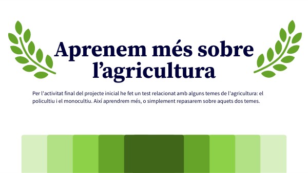 Per l'activitat final del projecte inicial he fet un test relacionat amb alguns temes de l'agricultura: el policultiu i el monocultiu. Així aprendrem més, o simplement repasarem sobre aquets dos temes.