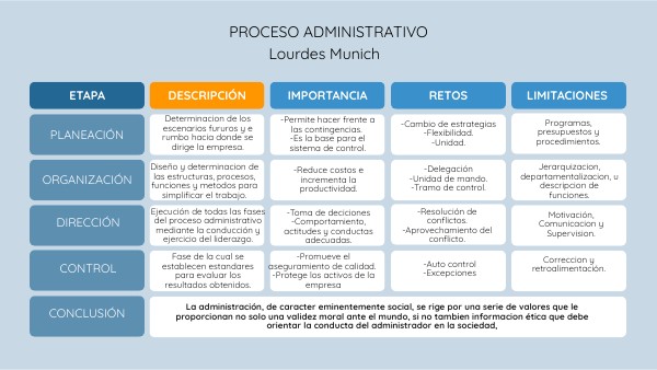 Ejecución de todas las fases del proceso administrativo mediante la conducción y ejercicio del liderazgo.