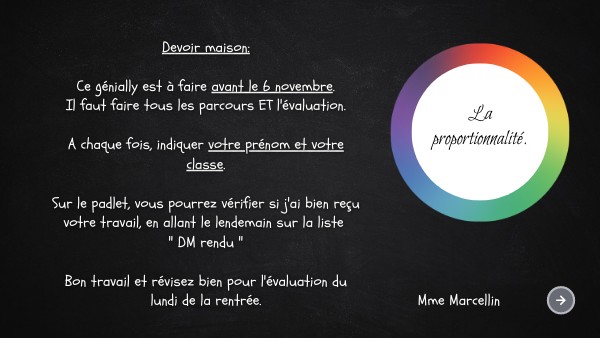 Devoir maison: Ce génially est à faire avant le 6 novembre. Il faut faire tous les parcours ET l'évaluation. A chaque fois, indiquer votre prénom et votre classe. Sur le padlet, vous pourrez vérifier si j'ai bien reçu votre travail, en allant le lendemain sur la liste " DM rendu " Bon travail et révisez bien pour l'évaluation du lundi de la rentrée.