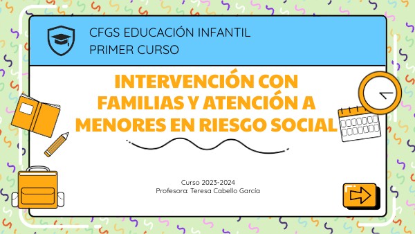 - Educador o educadora en instituciones y/o en programas específicos de trabajo con menores (0-6 años) en situación de riesgo social, o en medios de apoyo familiar, siguiendo las directrices de otros profesionales.
