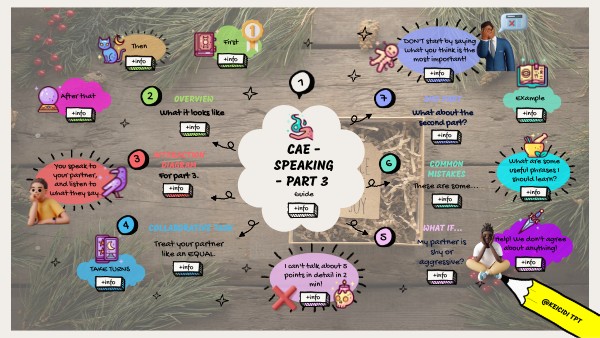 - Getting stuck on 1 topic (it's very easy to talk about one keyword for a long time, but you should try to organise your conversation so that it covers everything on the mind map)