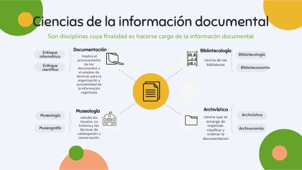 Son disciplinas cuya finalidad es hacerse cargo de la informacón documental