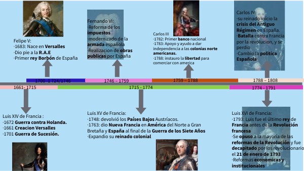 Felipe V: ·1683: Nace en Versalles ·Dio pie a la R.A.E ·Primer rey Borbón de España