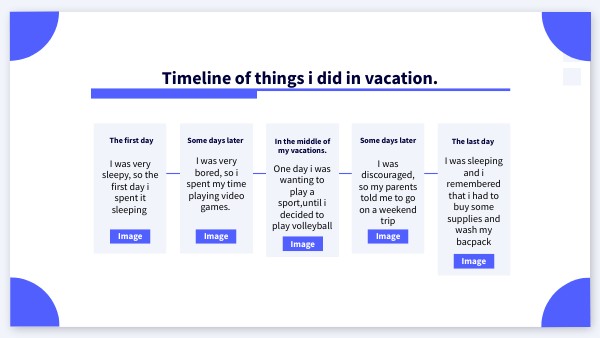 Timeline of things i did in vacation.