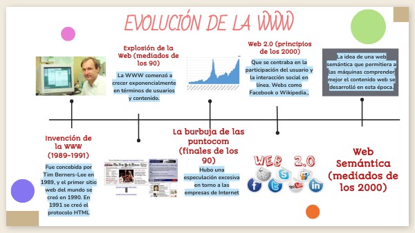 Fue concebida por Tim Berners-Lee en 1989, y el primer sitio web del mundo se creó en 1990. En 1991 se creó el protocolo HTML