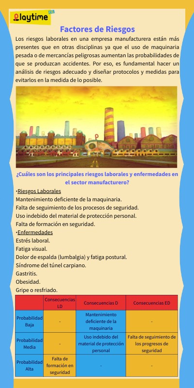 Los riesgos laborales en una empresa manufacturera están más presentes que en otras disciplinas ya que el uso de maquinaria pesada o de mercancías peligrosas aumentan las probabilidades de que se produzcan accidentes. Por eso, es fundamental hacer un análisis de riesgos adecuado y diseñar protocolos y medidas para evitarlos en la medida de lo posible.