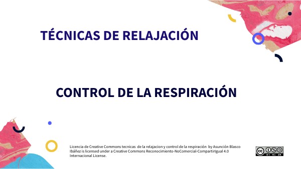 tecnicas de la relajacion y control de la respiración by Asunción Blasco Ibáñez is licensed under a Creative Commons Reconocimiento-NoComercial-CompartirIgual 4.0 Internacional License.