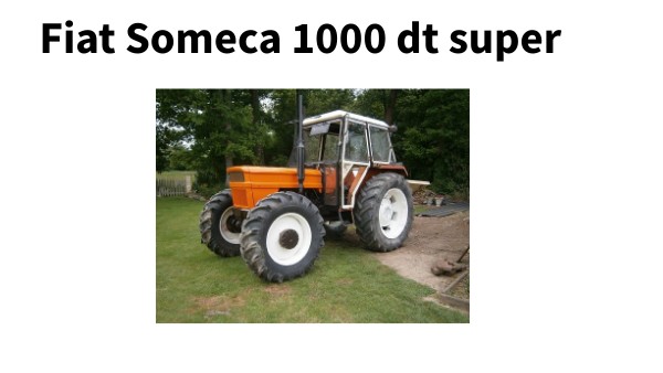 The Fiat someca 1000 dt super is a wheeled tractor produced by the Italian manufacturer Fiat Trattori from 1971 to 1979.