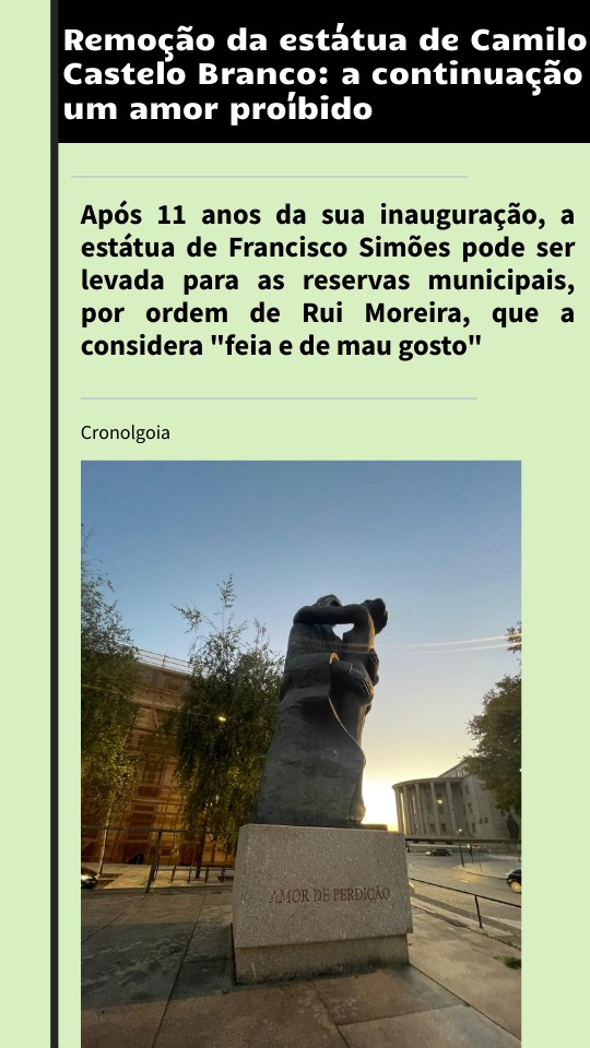 Remoção da estátua de Camilo Castelo Branco: a continuação de um amor proíbido