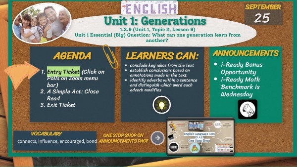 1.2.9 (Unit 1, Topic 2, Lesson 9) Unit 1 Essential (Big) Question: What can one generation learn from another?