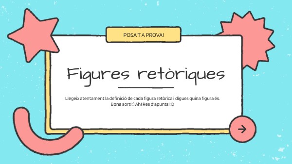 Llegeix atentament la definició de cada figura retòrica i digues quina figura és. Bona sort! :) Ah! Res d'apunts! :D