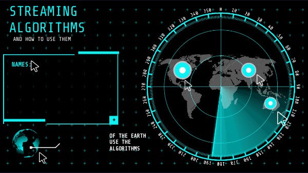 We basically use the streaming algorithms with some apps in networking such as monitoring network links, counting the number of distinct flows. They also have apps in databases, such as estimating the size of a join.