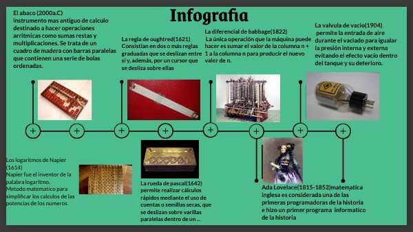 El abaco (2000a.C) instrumento mas antiguo de calculo destinado a hacer operaciones arritmicas como sumas restas y multiplicaciones. Se trata de un cuadro de madera con barras paralelas que contienen una serie de bolas ordenadas.