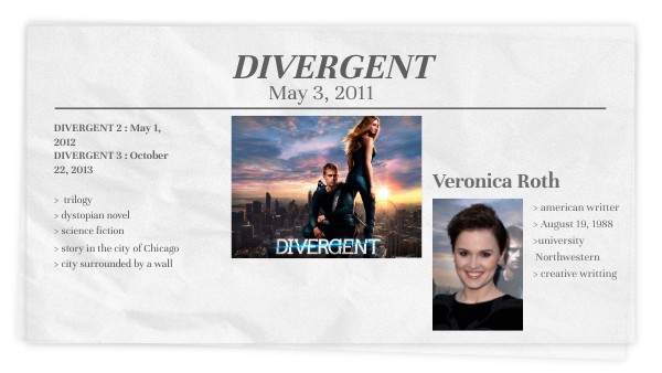 DIVERGENT 2 : May 1, 2012 DIVERGENT 3 : October 22, 2013