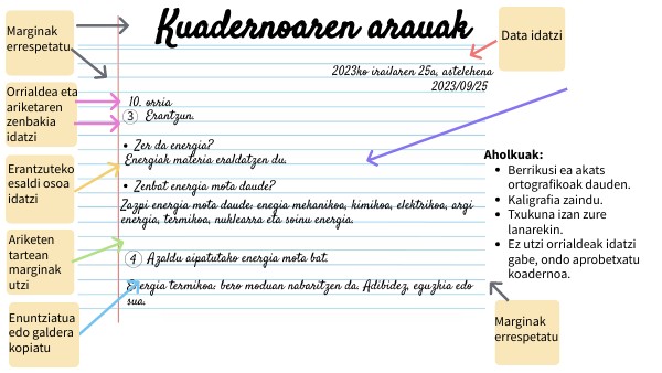 - Ez utzi orrialdeak idatzi gabe, ondo aprobetxatu koadernoa.