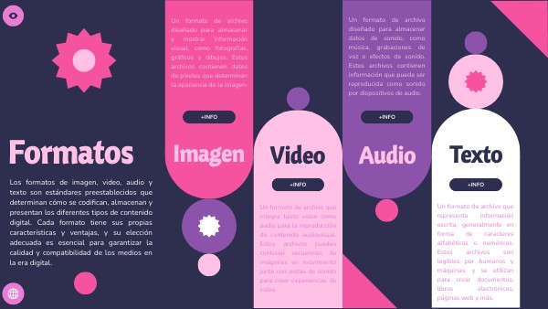 Los formatos de imagen, video, audio y texto son estándares preestablecidos que determinan cómo se codifican, almacenan y presentan los diferentes tipos de contenido digital. Cada formato tiene sus propias características y ventajas, y su elección adecuada es esencial para garantizar la calidad y compatibilidad de los medios en la era digital.