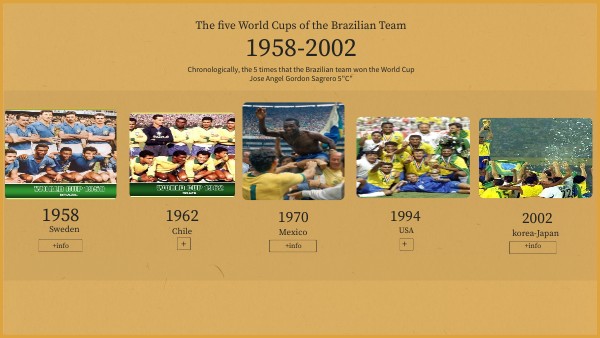 Chronologically, the 5 times that the Brazilian team won the World Cup Jose Angel Gordon Sagrero 5"C"