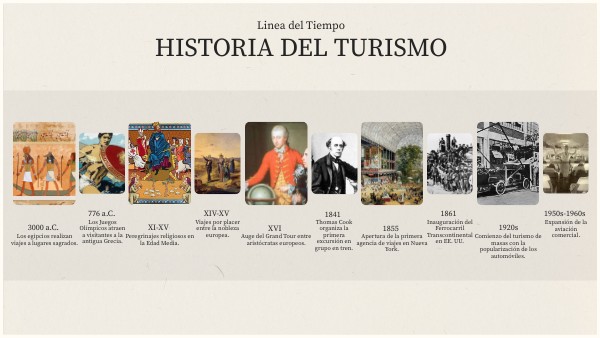 El contenido mostrado, es sobre la historia del Turismo en una linea temporal.