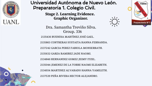 2135436 BUENDIA MARTÌNEZ JOSÈ GAEL. 2135863 CONTRERAS SUSTAITA HANNA FERNANDA. 2137242 GARCIA PEREZ FABIOLA MONSERRATH. 2135632 GARZA RAMIREZ JADE NAOMI. 2134846 HERNANDEZ GOMEZ JEIMY ITZEL. 2135044 JIMENEZ DE LA TORRE NAOMI ELIZABETH. 2134934 MARTINEZ ALVARADO HANNA YAMILETH. 2137539 PEÑA RIVERA HECTOR ALEJANDRO.