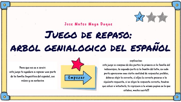 Para que me va a servir:este juego te ayudara a repasar una parte de la familia linguistica del español, sus raizes y su evolucion