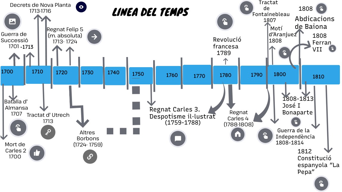 Els Borbó van arribar al tron d' Espanya al començament del segle 18i van establir una nova forma de govern: la monarquia absoluta. Aquesta concedia al rei tots els poders de l' estat.