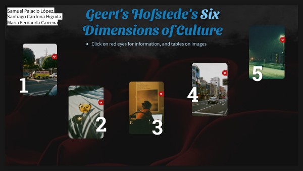 4. KAZAKHSTAN Power distance: This dimension deals with the fact that all individuals in societies are not equal, the attitude of the culture towards these inequalities amongst us. Power Distance is defined as when people in a group or country are fine with some having more power while others do not have a lot or none power. In other word is when people accept unequal distribution of power. Kazakhstan has a very high score of 88, is a nation where power holders are very distant in society. People accept that there’s a clear hierarchical order in which everybody has a place, and it’s why those whit power have more privileges. This disjunction between the powerful and less powerful impact on the status symbols asking them is very important. IRELAND INDIVIDUALISM The elemental concern explained by this dimension is the degree of interdependence a society maintains among its members. It pertains to whether an individual’s self-concepts is established based onI "I" or "We". In Individualist, community’s are supposed to look after themselves and their direct family only. In Collectivist societies, people belong to 'in groups' that provide support in exchange for loyalty. ROMANIA MASCULINITY A high rating (Masculine) on this dimension indicates that the society prioritizes competition,achievement and success, with success being defined by being in the first place and the best in a particular field. This value system that starts in school and continues throughout organisational life. On the other part, A low score (Feminine) on the dimension means that the values in society are caring for others and quality of life. A Feminine society is one where quality of life is the sign of success and standing out from the crowd is not admirable. The central concern is to the real motivation of people, wanting to be the best (Masculine) or liking what you do (Feminine). SOUTH AFRICA UNCERTAINTY AVOIDANCE The dimension Uncertainty Avoidance relates to how society handles the fact that we can’t predict the future. This uncertainty brings some mental issues such as anxiety. Different cultures have learnt to handle this anxiety in different ways. The extent to which the members of a culture feel concerned or uncertain by ambiguous or unknown situations and have established beliefs and systems that try to avoid these is reflected in the score on Uncertainty Avoidance. TRINIDAD AND TOBAGO LONG TERM ORIENTATION This dimension describes how all societies must balance their connections to each one’s history, while facing present and future changes, and different societies prioritise these two existential goals differently. Normative societies, which score low on this dimension, tend to uphold long-standing traditions and norms while viewing societal change with suspicion. Those with a culture which scores high, on the other hand, take a more practical approach: they promote thrift and efforts in modern education as a way to prepare for the future. DENMARK INDULGENCE A determined challenge that humanity has faced, in the present and in the past, is the degree to which small children are socialized. Without socialization we do not become "human". This dimension is defined as the extent to which people try to control their desires and impulses, based on the way they were raised. Relatively weak control is called "Indulgence" and relatively strong control is called "Restraint". Cultures can be categorized as either, Indulgent or Restrained.