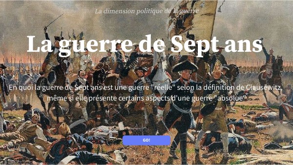 Pour conclure, cette guerre de Sept ans est bien une "guerre réelle" selon la définition de Clausewitz car elle oppose principalement deux belligérants, que c'est une guerre classique qui oppose deux armées d'états, que les stratégies militaires jouent un grand rôle dans cette guerre et le principal objectif relève de la politique Cependant nous pouvons nuancer cela en montrant qu'elle devient également une guerre absolue avec notamment la forte implication de toutes les populations mais également une volonté d'extermination de l'adversaire et pas seulement une victoire militaire Tout ces élément nous permettent donc d'affirmer que bien qu'elle corresponde a la "guerre réelle" du modèle Clausewitzien, la guerre de Sept ans possède également des caractéristiques d'une guerre "absolue"