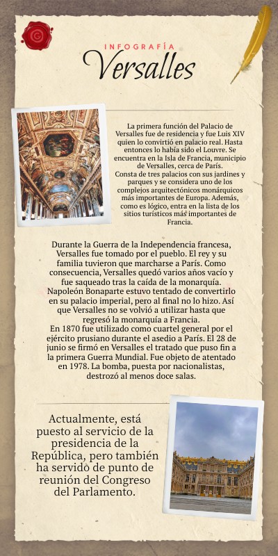 La primera función del Palacio de Versalles fue de residencia y fue Luis XIV quien lo convirtió en palacio real. Hasta entonces lo había sido el Louvre. Se encuentra en la Isla de Francia, municipio de Versalles, cerca de París. Consta de tres palacios con sus jardines y parques y se considera uno de los complejos arquitectónicos monárquicos más importantes de Europa. Además, como es lógico, entra en la lista de los sitios turísticos más importantes de Francia.