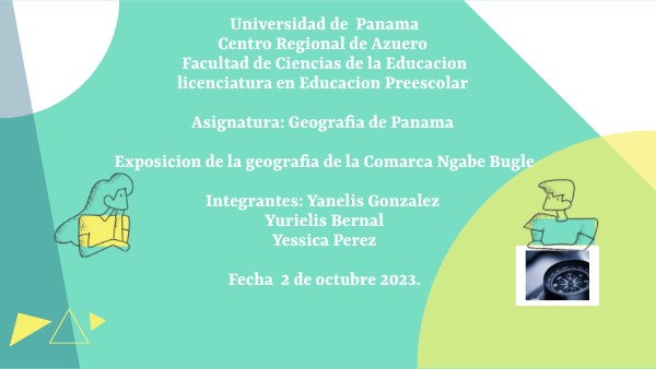 Universidad de PanamaCentro Regional de Azuero Facultad de Ciencias de la Educacion licenciatura en Educacion Preescolar Asignatura: Geografia de Panama Exposicion de la geografia de la Comarca Ngabe Bugle Integrantes: Yanelis Gonzalez Yurielis Bernal Yessica Perez Fecha 2 de octubre 2023.