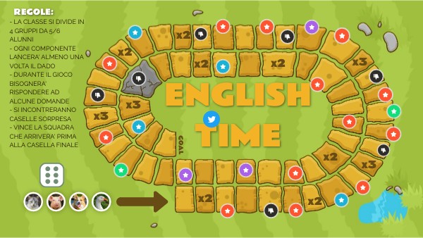 - LA CLASSE SI DIVIDE IN 4 GRUPPI DA 5/6 ALUNNI- OGNI COMPONENTE LANCERA' ALMENO UNA VOLTA IL DADO - DURANTE IL GIOCO BISOGNERA' RISPONDERE AD ALCUNE DOMANDE - SI INCONTRERANNO CASELLE SORPRESA - VINCE LA SQUADRA CHE ARRIVERA' PRIMA ALLA CASELLA FINALE