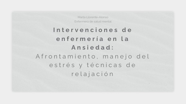 Intervenciones de enfermería en la Ansiedad:Afrontamiento, manejo del estrés y técnicas de relajación