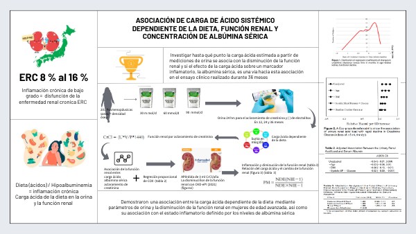 Demostraron una asociación entre la carga ácida dependiente de la dieta mediante parámetros de orina y la disminución de la función renal en mujeres de edad avanzada, así como su asociación con el estado inflamatorio definido por los niveles de albúmina sérica