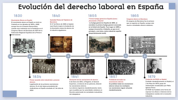 Fuente Utilizada: - https://www.timetoast.com/timelines/hechos-historicos-relevantes-relacionados-con-la-evolucion-del-derecho-laboral-y-el-movimiento-obrero-en-espana