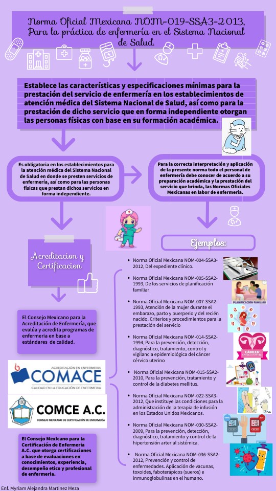 Para la correcta interpretación y aplicación de la presente norma todo el personal de enfermería debe conocer de acuerdo a su preparación académica y la prestación del servicio que brinda, las Normas Oficiales Mexicanas en labor de enfermeria.