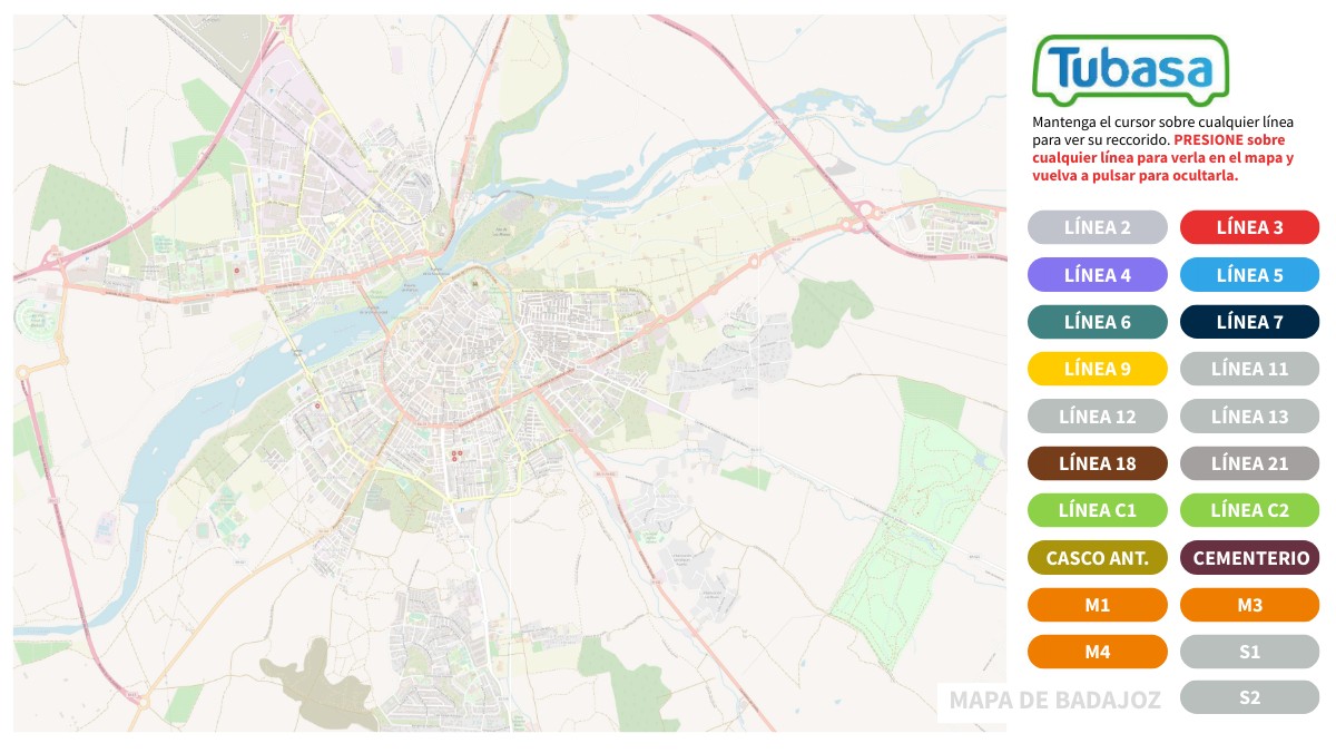 Mantenga el cursor sobre cualquier línea para ver su reccorido. PRESIONE sobre cualquier línea para verla en el mapa y vuelva a pulsar para ocultarla.