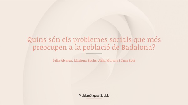 Hem estat fent un estudi per a conèixer quins són els problemes socials que més preocupen a la població de Badalona. Per saber-ho ens hem centrat en dos grups específics. Hem analitzat les opinions d’un grup petit que ha estat la nostra colla d’amics i les del grup gran que ha estat la gent gran que viu a Badalona.