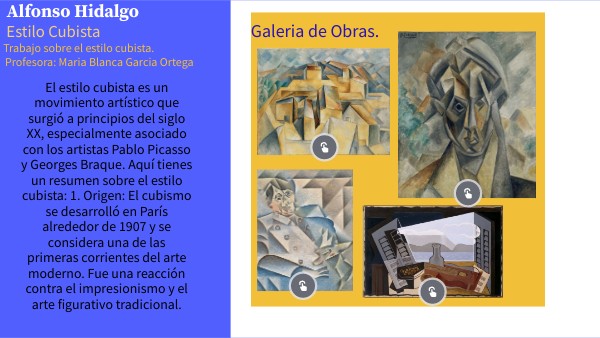 Trabajo sobre el estilo cubista. Profesora: Maria Blanca Garcia Ortega