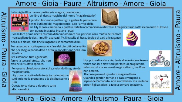 La famiglia Bliss ha una pasticceria magica, possiedono un libro di ricette magiche dal nome "magiricettario".