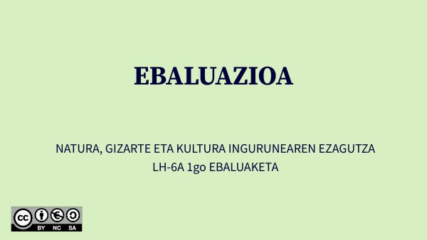 NATURA, GIZARTE ETA KULTURA INGURUNEAREN EZAGUTZA LH-6A 1go EBALUAKETA