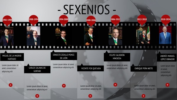 LOS DATOS MÁS RELEVANTES DEL SEXENIO DE: MIGUEL DE LA MADRID CARLOS SALINAS DE GORTARI ERNESTO ZEDILLO VICENTE FOX FELIPE CALDERÓN ENRIQUE PEÑA NIETO ANDRÉS MANUEL LÓPEZ OBRADOR