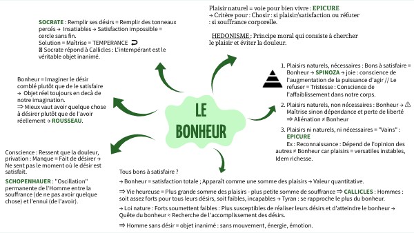 - Plaisirs naturels, non nécessaires : Bonheur → ⚠ Maîtrise sinon dépendance et perte de liberté ⇒ Aliénation ≠ Bonheur