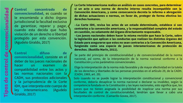 Control concentrado de convencionalidad, es cuando se le encomienda a dicho órgano jurisdiccional la facultad exclusiva de garantizar, reparar y pagar, cuando esta decida que hubo violación de un derecho o libertad protegido por esta convención. (Agudelo Giraldo, 2017)