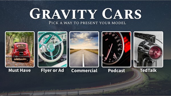 Create a flyer or advertisement that discusses your findings, following the rubric you received in class. Include both text and images that convinces the reader that your car has the best design to maximize speed.Use one of these Canva template designs (or create your own)
