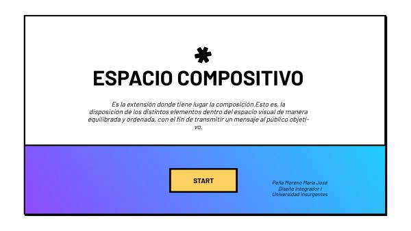 Es la extensión donde tiene lugar la composición.Esto es, la disposición de los distintos elementos dentro del espacio visual de manera equilibrada y ordenada, con el fin de transmitir un mensaje al público objeti- vo.