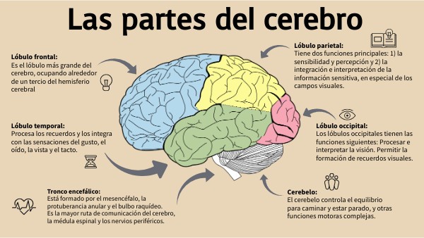 Lóbulo temporal: Procesa los recuerdos y los integra con las sensaciones del gusto, el oído, la vista y el tacto.