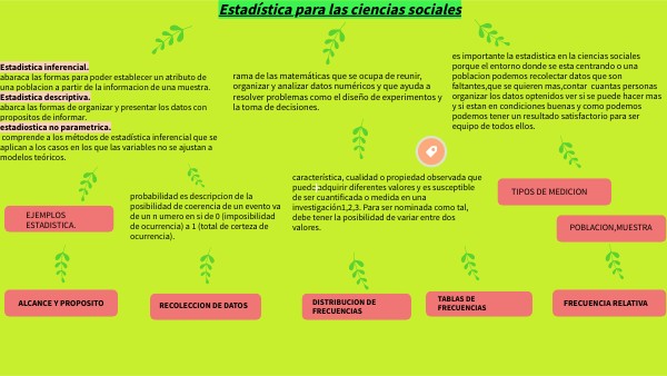 Estadistica inferencial. abaraca las formas para poder establecer un atributo de una poblacion a partir de la informacion de una muestra. Estadistica descriptiva. abarca las formas de organizar y presentar los datos con propositos de informar. estadiostica no parametrica. comprende a los métodos de estadística inferencial que se aplican a los casos en los que las variables no se ajustan a modelos teóricos.