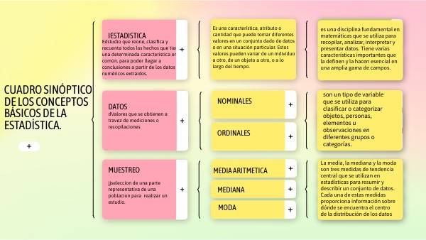 Cuadro sinóptico de los conceptos básicos de la estadística.