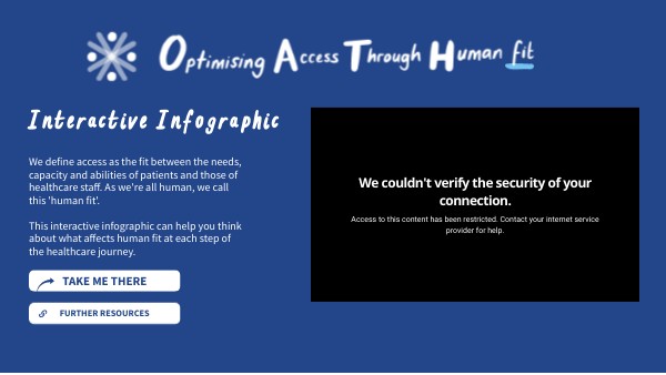 We define access as the fit between the needs, capacity and abilities of patients and those of healthcare staff. As we're all human, we call this 'human fit'. This interactive infographic can help you think about what affects human fit at each step of the healthcare journey.