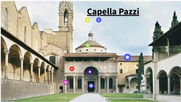 La capella Pazzi és un edifici de petites dimensions i amb un pòrtic cobert per volta de canó, que es va construir com a recinte funerari dels Pazzi. Aquesta capella ha sigut considerada com l'exemple més representatiu de l'arquitectura de Brunelleschi, el qual hi mostra, una vegada més, a més de la cita d'elements clàssics la seva preocupació per l'ús adequat de les proporcions i de l'harmonia, emprant com a mesura la proporció àuria (ja emprada anteriorment pels grecs als seus temples) en el disseny de la seva planta i façana.