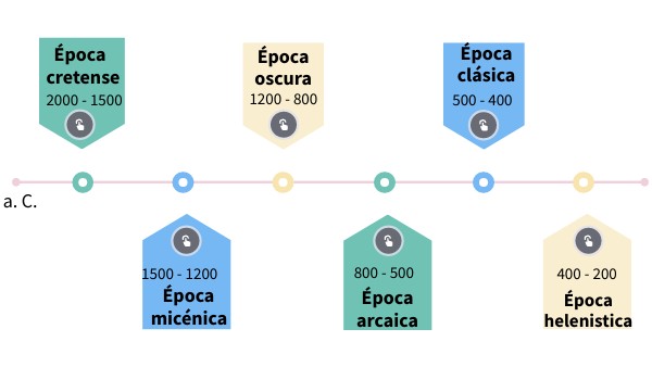 En esta época fueron comunes los grandes desplazamientos, como el asentamiento que tuvieron los dorios en el Peloponeso. Esta época finalizó con la aparición de las primeras ciudades estado o polis.